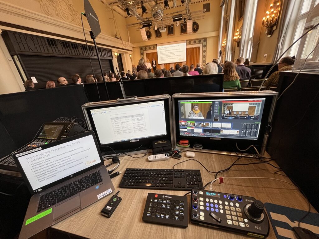 Huolehdimme tuotannon suunnittelusta, teknisestä toteutuksesta ja lähetyksestä alusta loppuun, jotta voitte keskittyä sisältöön ilman teknistä stressiä.
